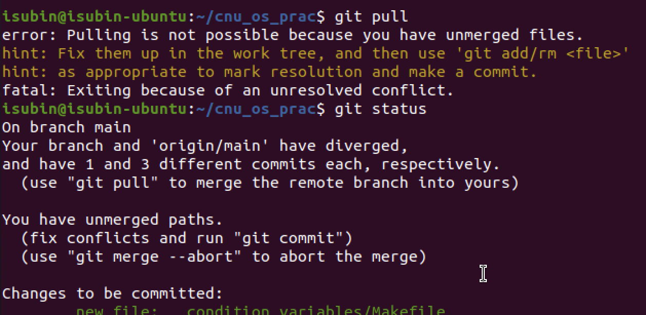 [오류해결] error: Pulling is not possible because you have unmerged files. 본문