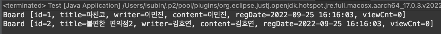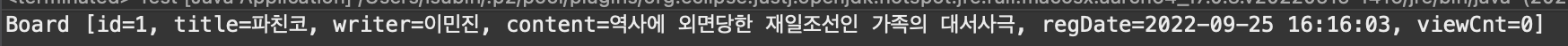 Board board = dao.selectOne(2); // id가 2번인 게시글을 가져온다