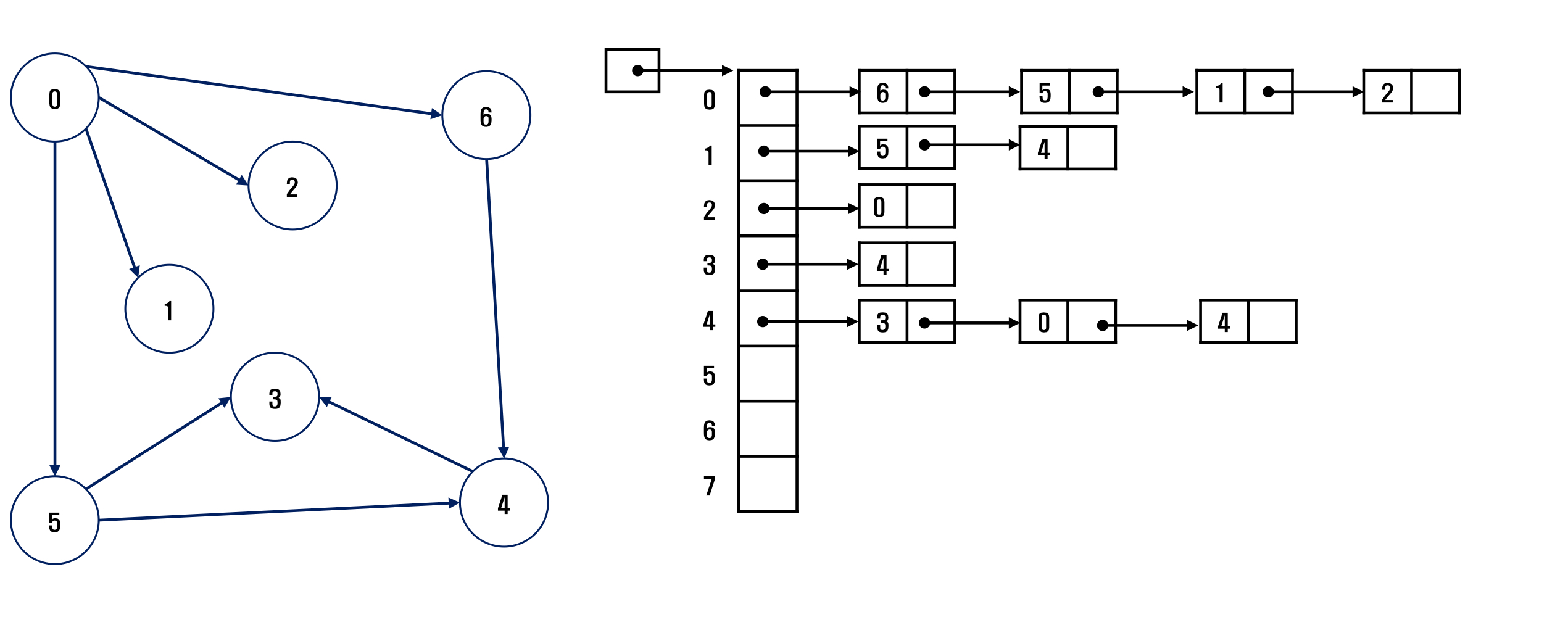 - 각 정점에 대한 인접정점들을 순차적으로 표현